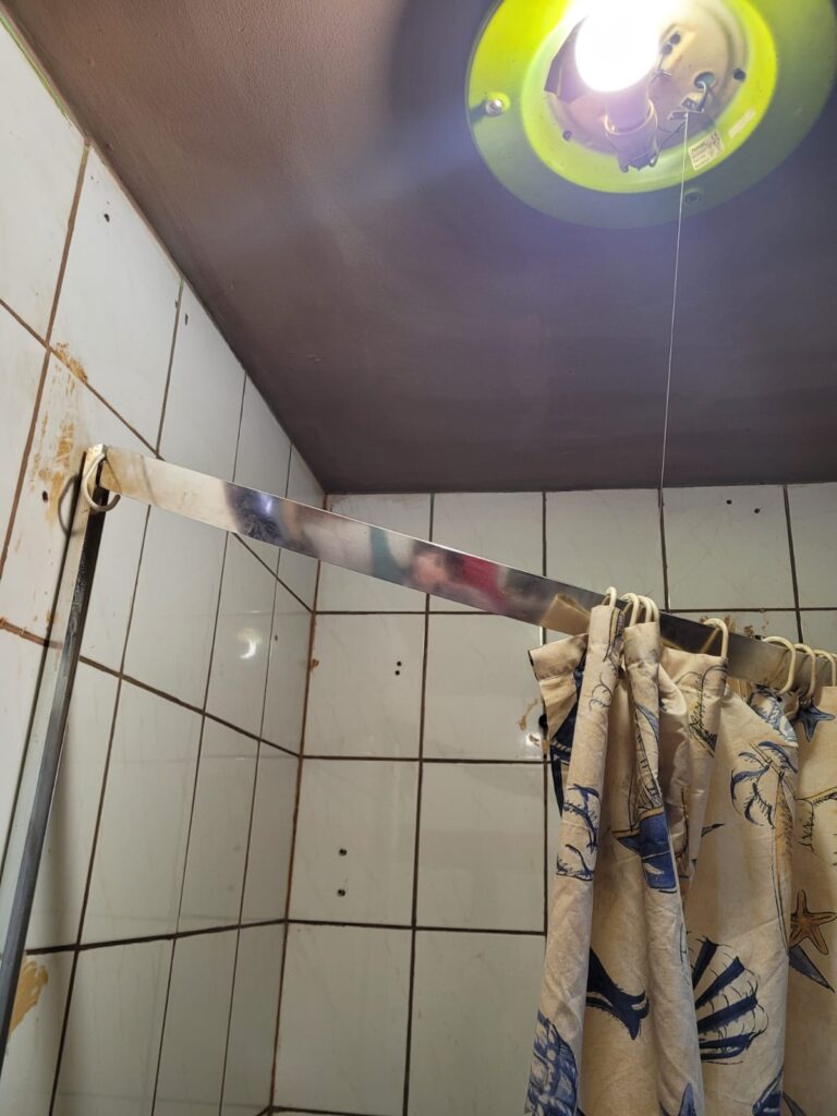 Poprzednia łazienka wymagała kapitalnego remontu – instalacje hydrauliczne i elektryczne oraz całe wyposażenie były w złym stanie, a korzystanie z niej nie było bezpieczne ani komfortowe, szczególnie dla małych dzieci.